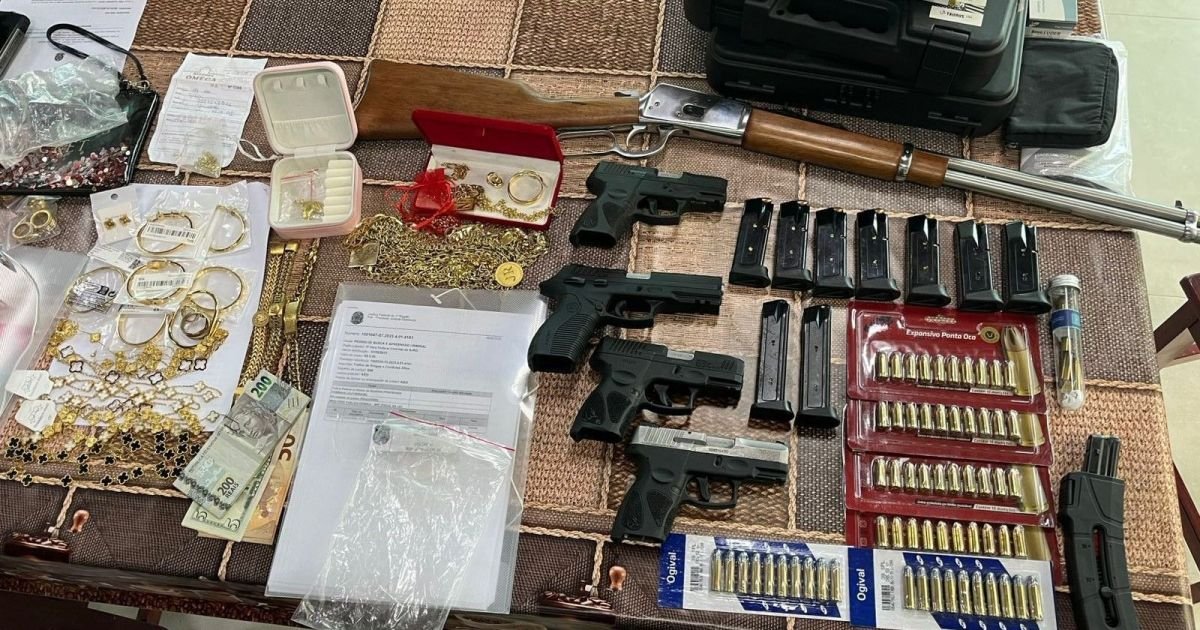 Durante as buscas, os policiais apreenderam armas de fogo, aproximadamente R$ 49 mil em espécie, além de veículos e joias, materiais que, segundo a PF, podem estar relacionados às atividades ilícitas investigadas.